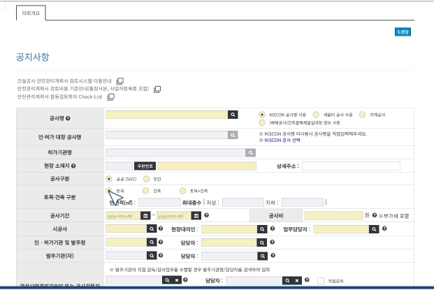 그런데 안전관리계획을 작성할 때는 법적으로 공공 발주공사 기준을 따라야 해서 “공공”으로 선택해야 합니다. 즉, 발주처는 민간이지만 안전관리 의무는 공공 기준을 적용하는 거죠.