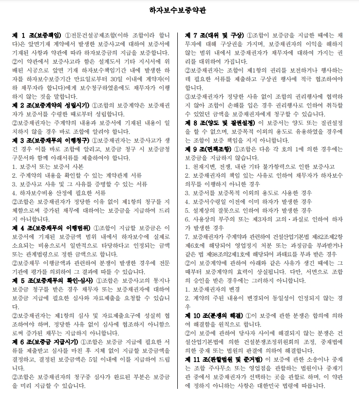 | 전문건설 하자보증서 하자보수보증 약관 면책사항 정보 (2022.2.3개정) (0) | 2022.08.22 |